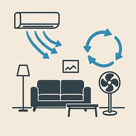 - 대각 배치: 에어컨과 맞은편·높은 곳에 서큘, 벽·천장 타고 순환