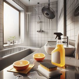 샤워유리·수전·샤워헤드에 구연산 분무/팩 10~20분→부드러운 패드로 문지름→헹굼→마른 걸레 마감.